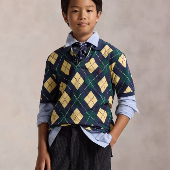 Argyle-Print Cotton Mesh Polo Shirt TODDLER/KID BOYS-Argyle Green