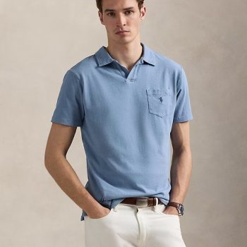 Standard Fit Cotton-Linen Polo Shirt-Channel Blue