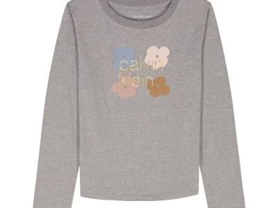 Girls Flower Logo Graphic T-Shirt-Grey/Slate