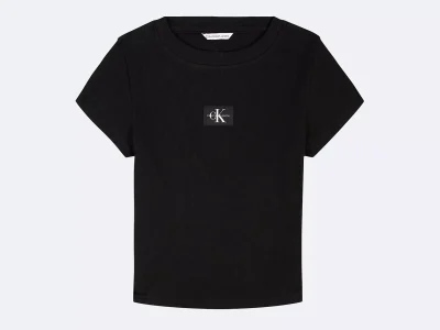 Girls Woven Monologo Rib T-Shirt-Cellar/Slvr