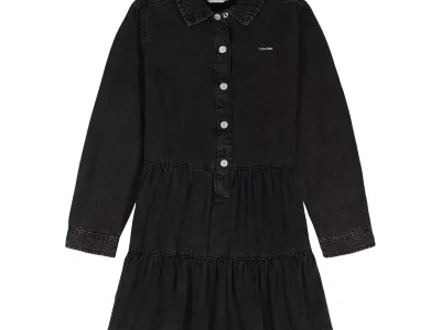 Girls Denim Mini Shirt Dress-Nordic/Grey Haze
