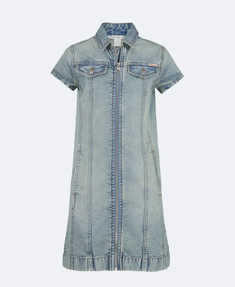 Denim Zip Mini Dress-Coastal/Tibtn Red/Plr Sky