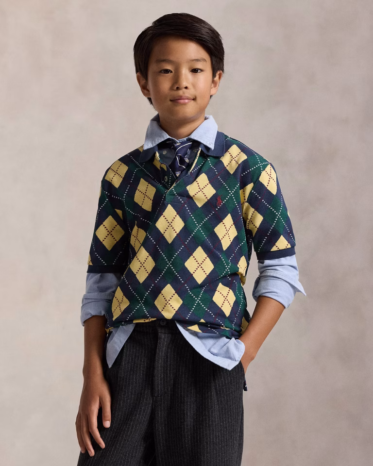 Argyle-Print Cotton Mesh Polo Shirt TODDLER/KID BOYS-Argyle Green