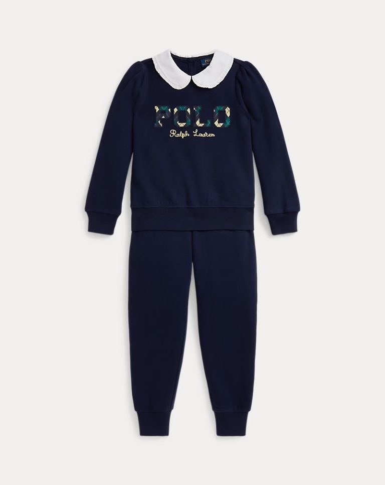 Argyle-Logo Fleece Sweatshirt & Pant Set-Refined Navy