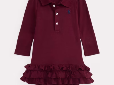 Ruffled Soft Cotton Polo Dress & Bloomer-Classic Wine