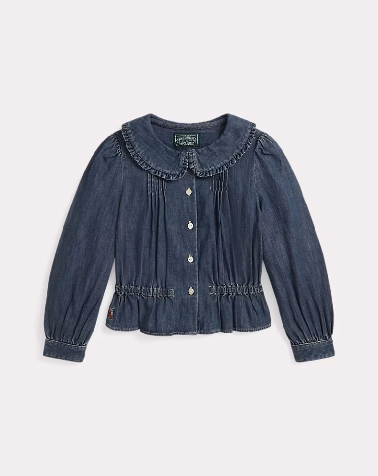 Long-Sleeve Denim Blouse Toddler/Kids Girl-Blaine Wash