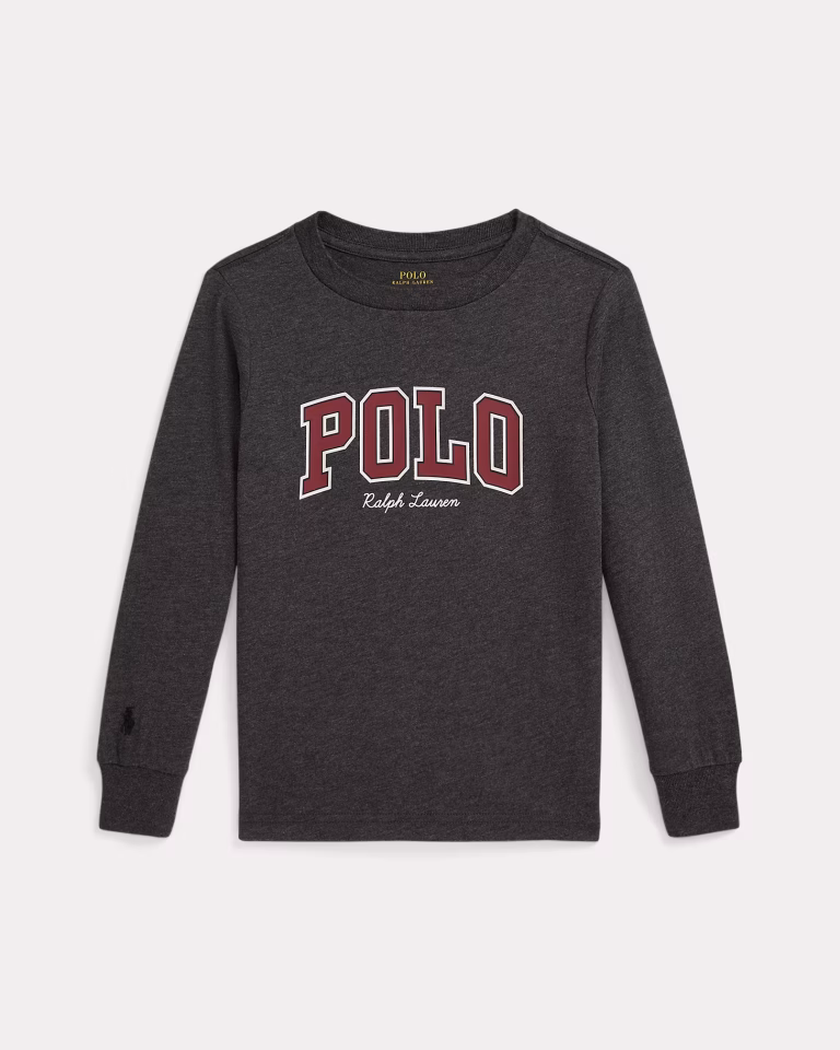 Logo Cotton Long-Sleeve Tee Toddler/Kid Boys-Polo Black