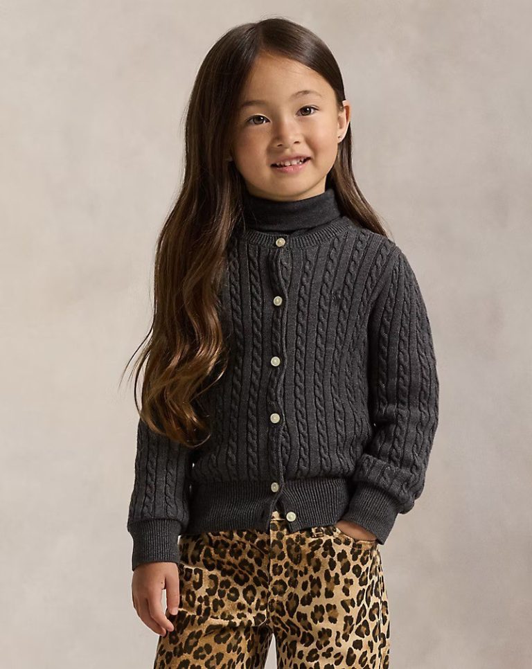 Mini-Cable Cotton Cardigan Toddler/Kids Girls-Windsor Heather