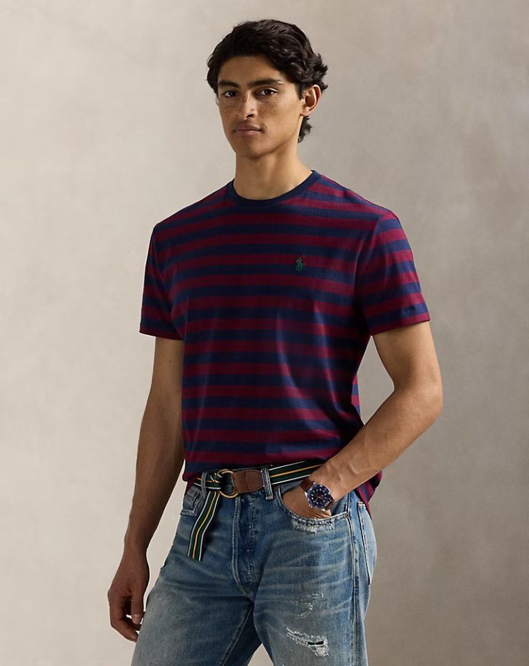 Classic Fit Striped Jersey T-Shirt-Classic Wine/Cruise Navy