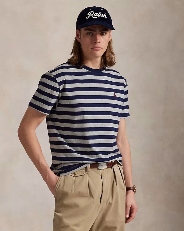 Classic Fit Striped Jersey T-Shirt-Andover Heather/Navy