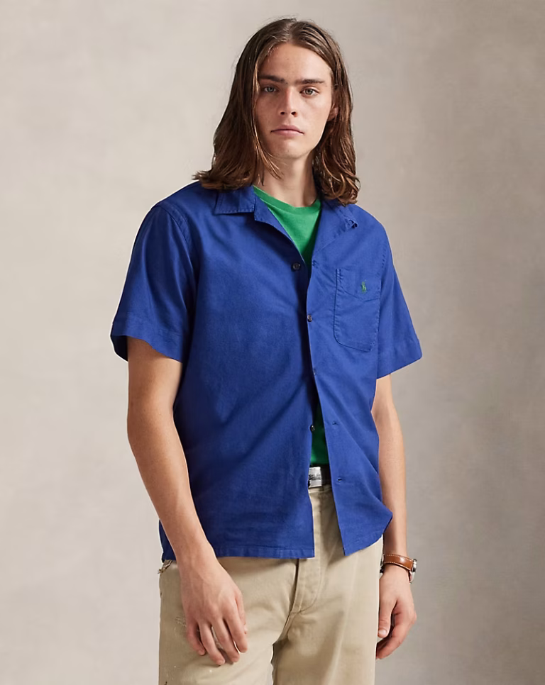 Classic Fit Plaid Oxford Camp Shirt-Khaki Green Multi