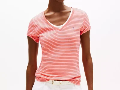 Stripe V-Neck Favorite T-Shirt- Peach Dusk Stripe#XW05026-TKL