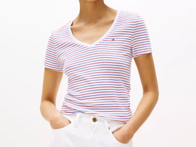Stripe V-Neck Favorite T-Shirt- Dazzling Blue Stripe#XW05026-CEI