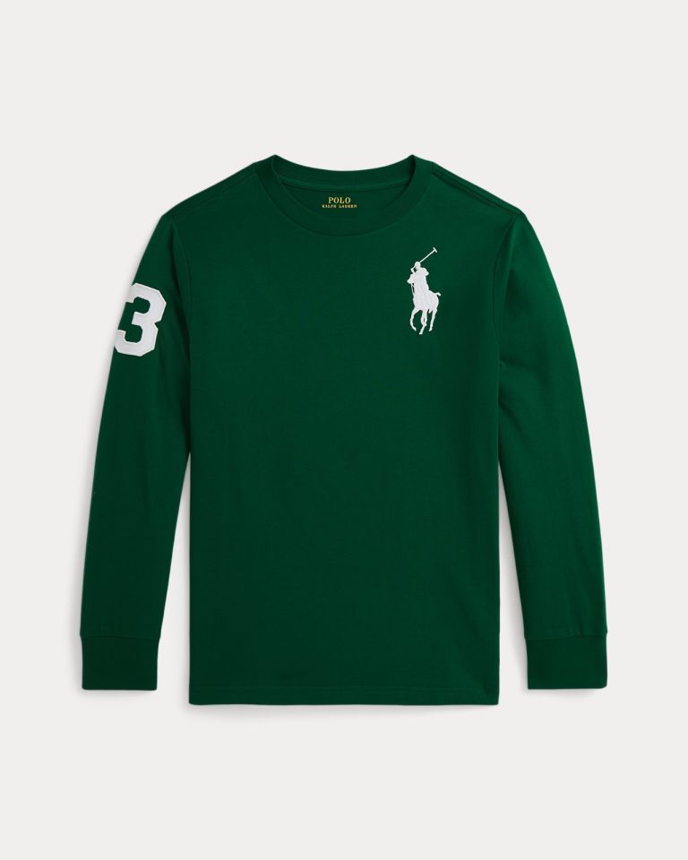 Big Pony Mesh Long-Sleeve Polo Shirt Kids Boys – Athletic Green #550388