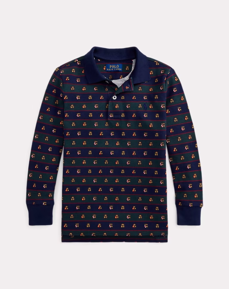 Crest-Print Mesh Long-Sleeve Polo Shirt Kids Boys – Multi #100060805