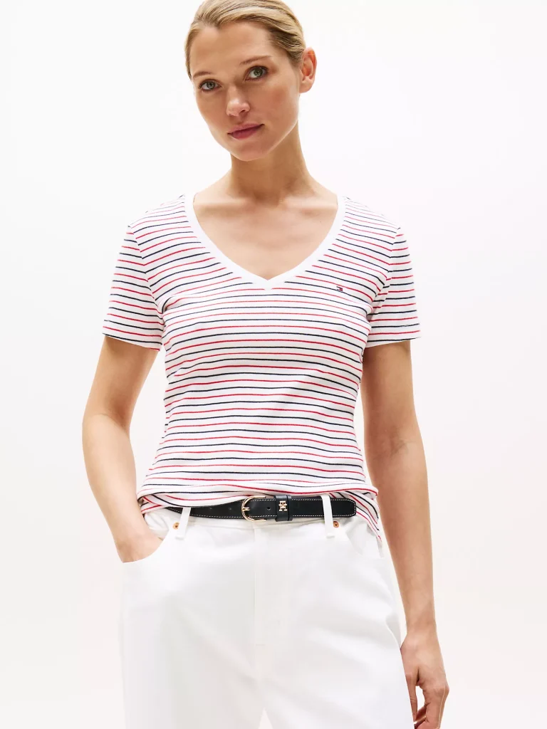 Stripe V-Neck Favorite T-Shirt- Navy Stripe#XW05026-DW5