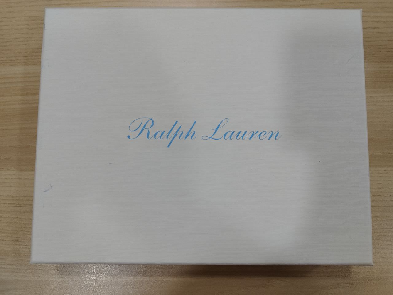 This is a Ralph Lauren box with a white colour and blue lettering. It is perfect for storing items such as clothing, accessories, and other items. The box is made of durable cardboard. The box comes in a variety of sizes and is great for both organization and presentation.
