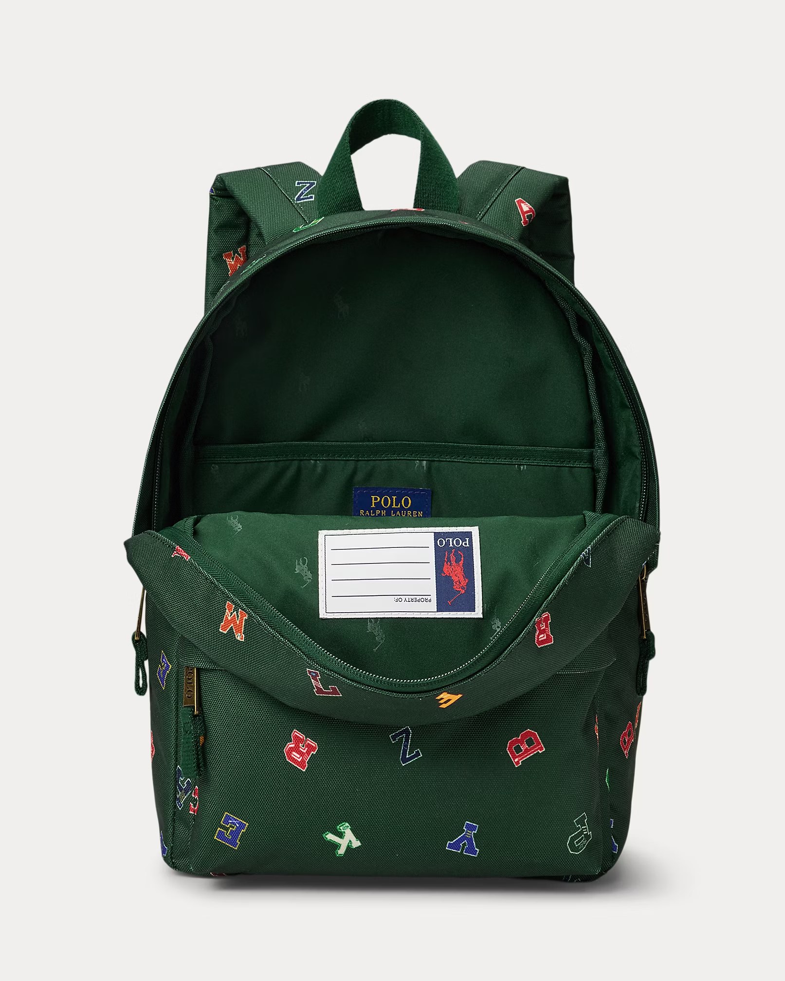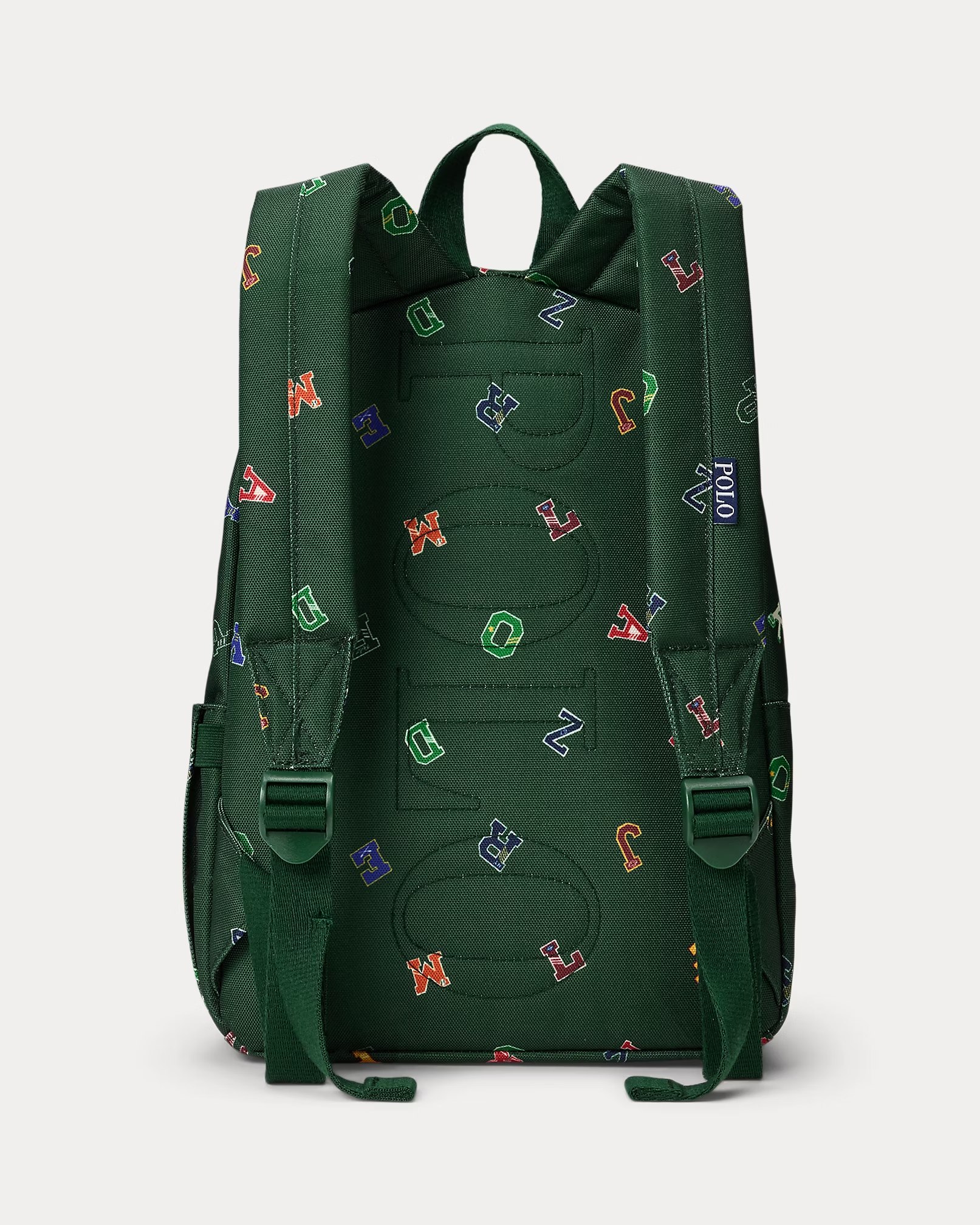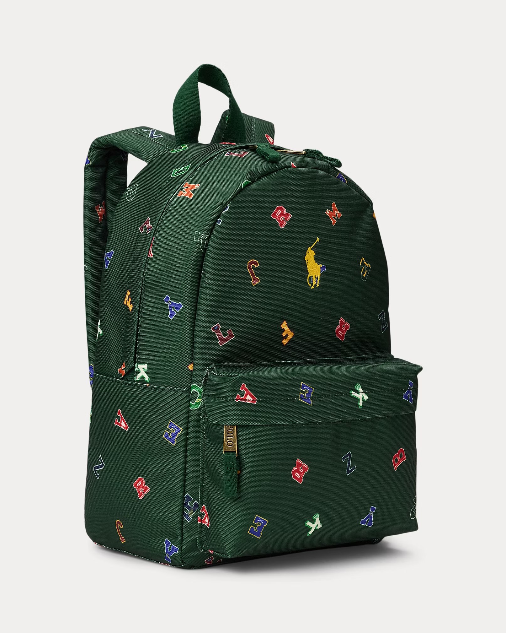 Great for school days and weekend outings, this backpack features plenty of pockets and an alphabet motif inspired by letterman patches.