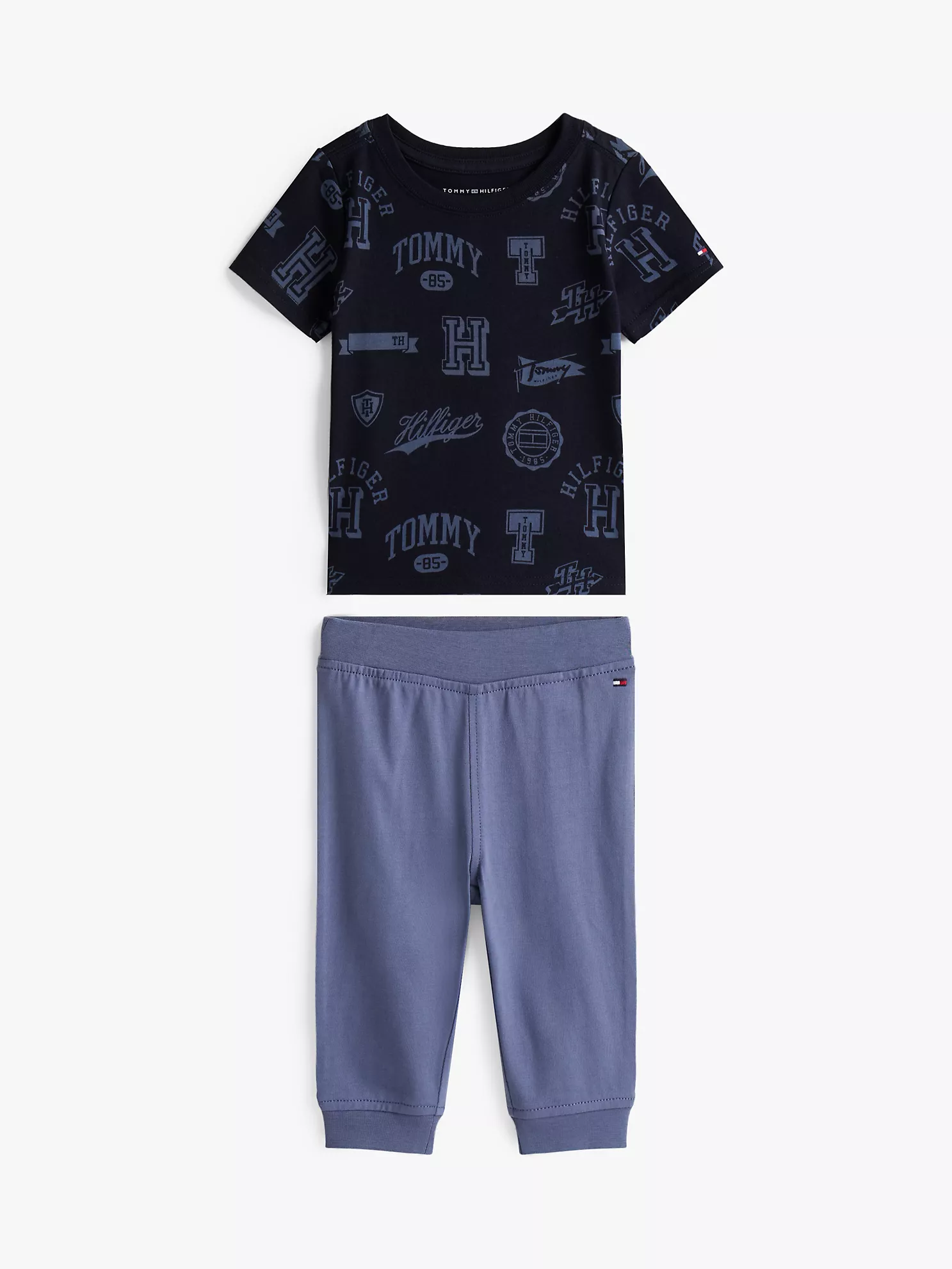 Babies’ Allover Logo Shirt and Pant Set-Navy Blue