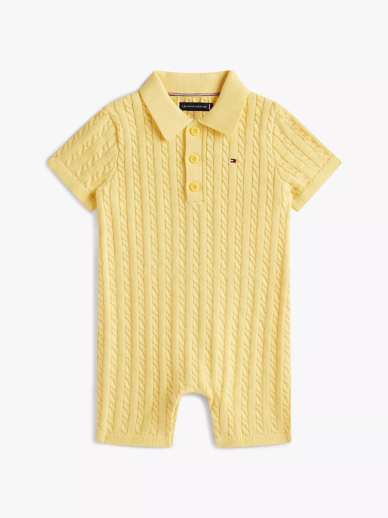 Babies’ Cable Knit Polo Shortall-Sunshine