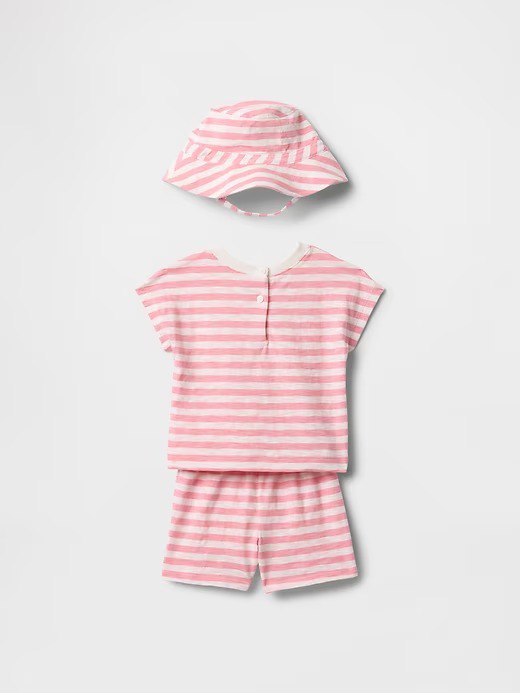 Baby Organic Cotton Three-Piece Outfit Set – Pink Stripe