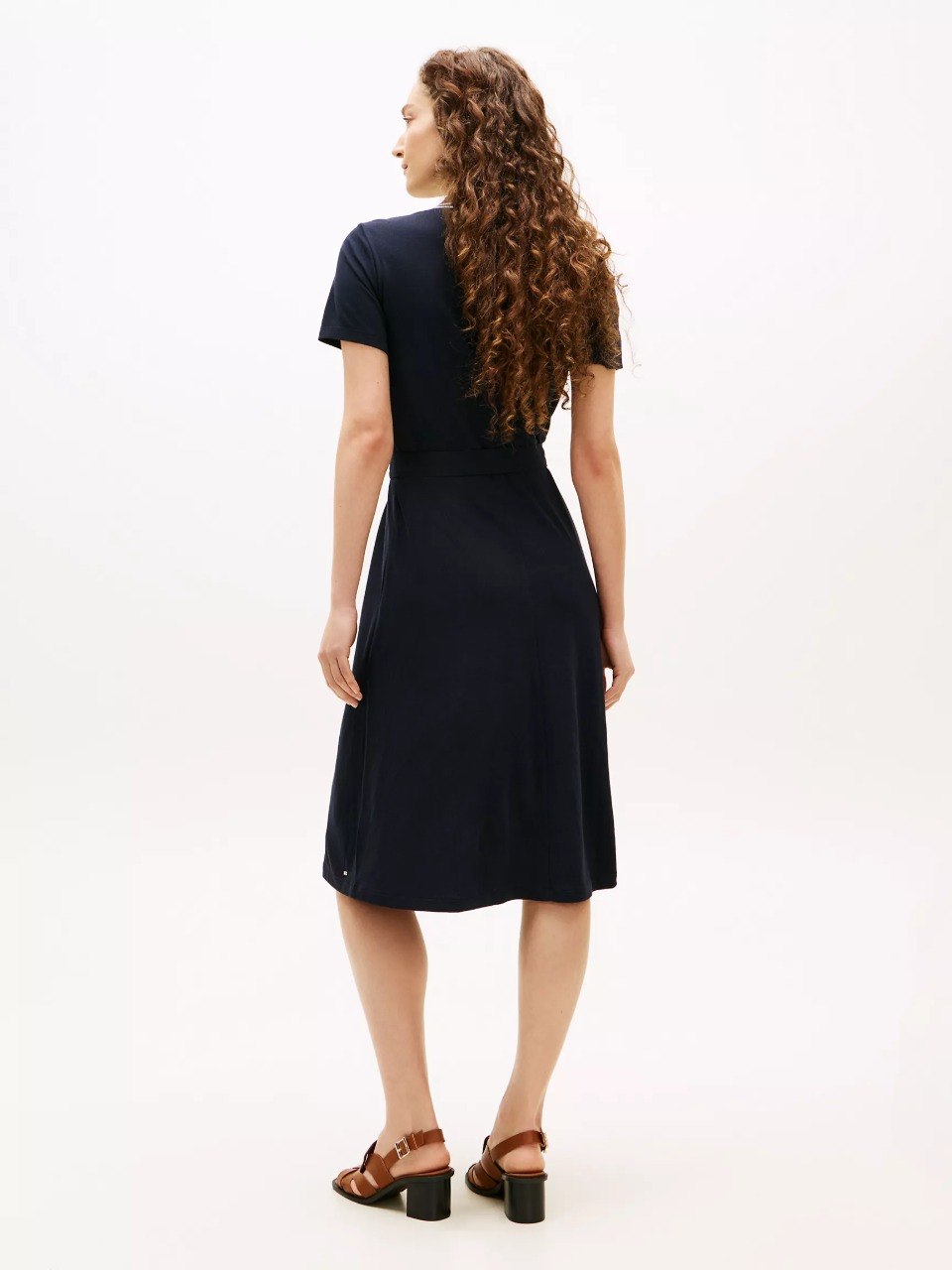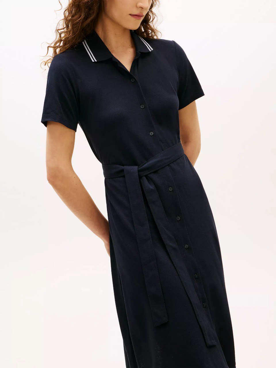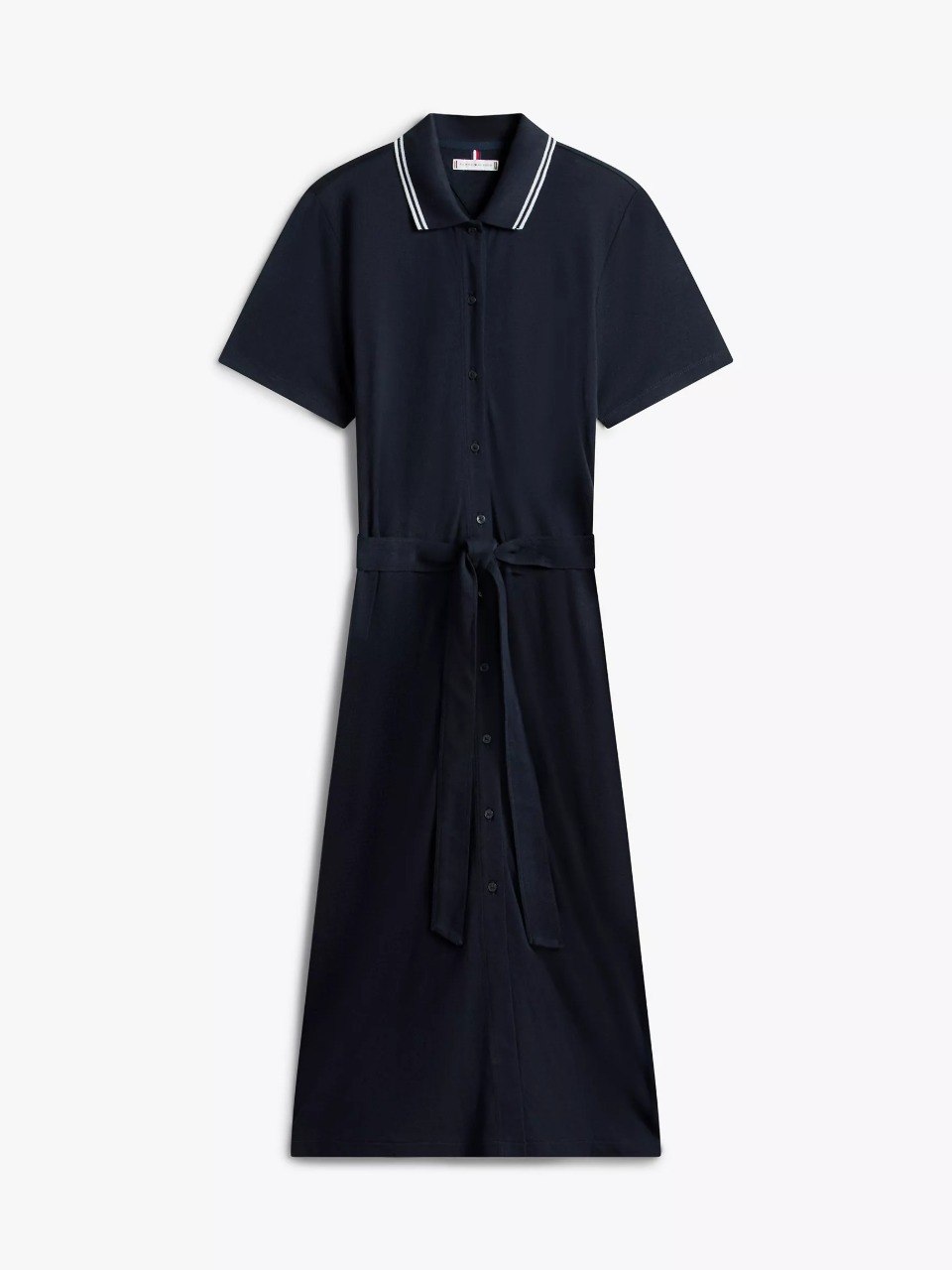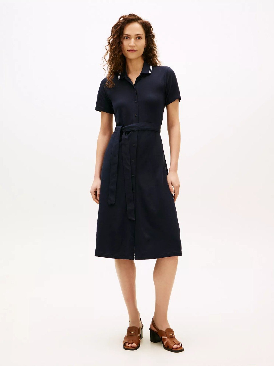 Tommy Hilfiger women’s dress. This midi polo dress is made from a lightweight cotton-viscose blend for breathability during the warmer months. The tipped collar lends a sporty vibe, while the adjustable D-ring belt allows for a personalized fit.