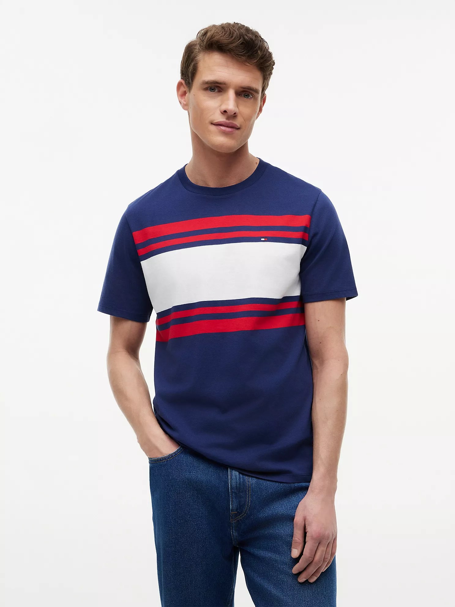 Tommy Hilfiger men’s T-shirt. Made from a cotton jersey knit with a smooth, soft feel and excellent stretch, our block stripe tee is super comfortable.