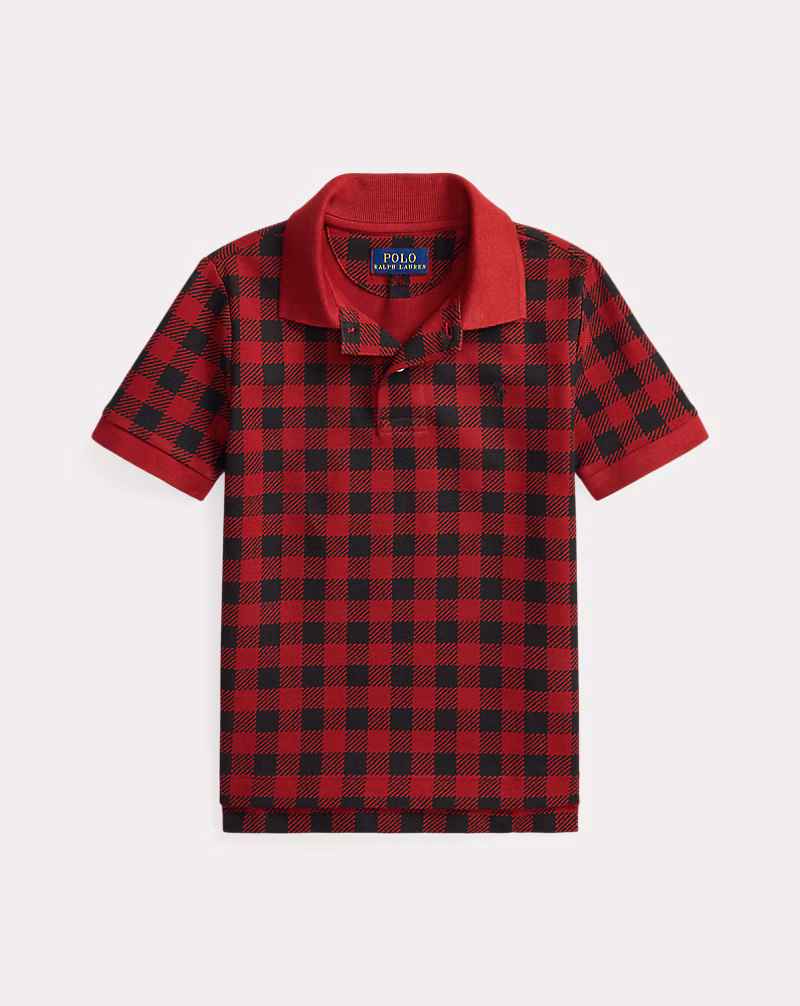 Buffalo Check Cotton Mesh Polo Shirt Toddler/Kid Boys-Red