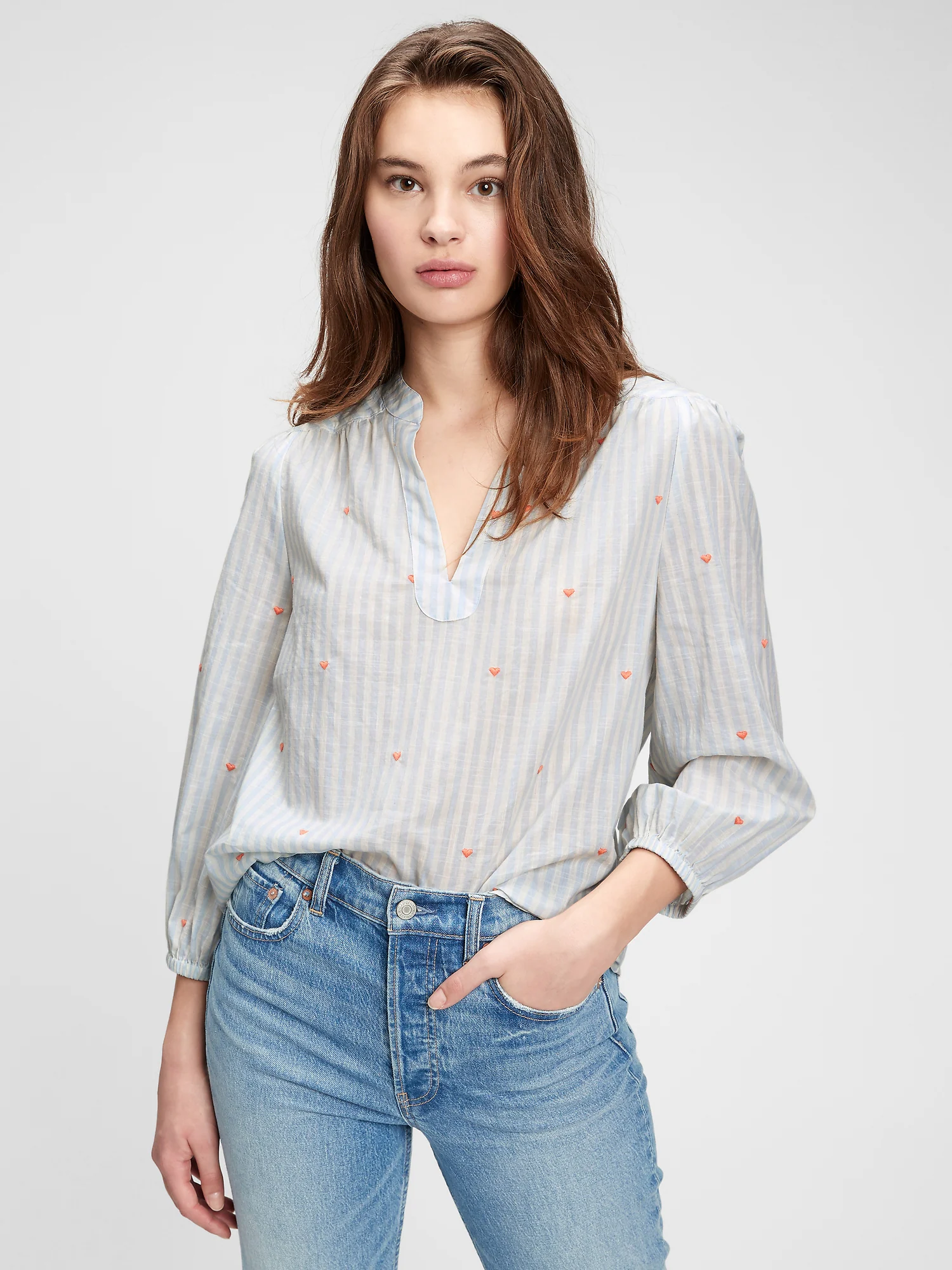 Original price was: RM142.RM71Current price is: RM71.READYSTOCK Gap Women Blouse Popover Print Top – blue/white