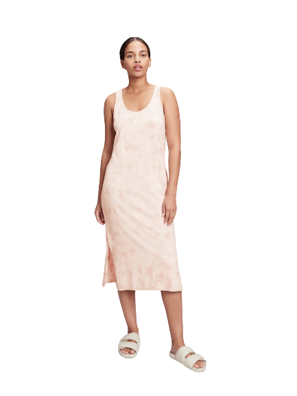 Soft slub jersey knit. Tank straps. Scoopneck. Seam details at front and back. Slits at hem. Select styles have allover tie-dye. Straight, easy fit. Hits below the knee. Cotton 100%.