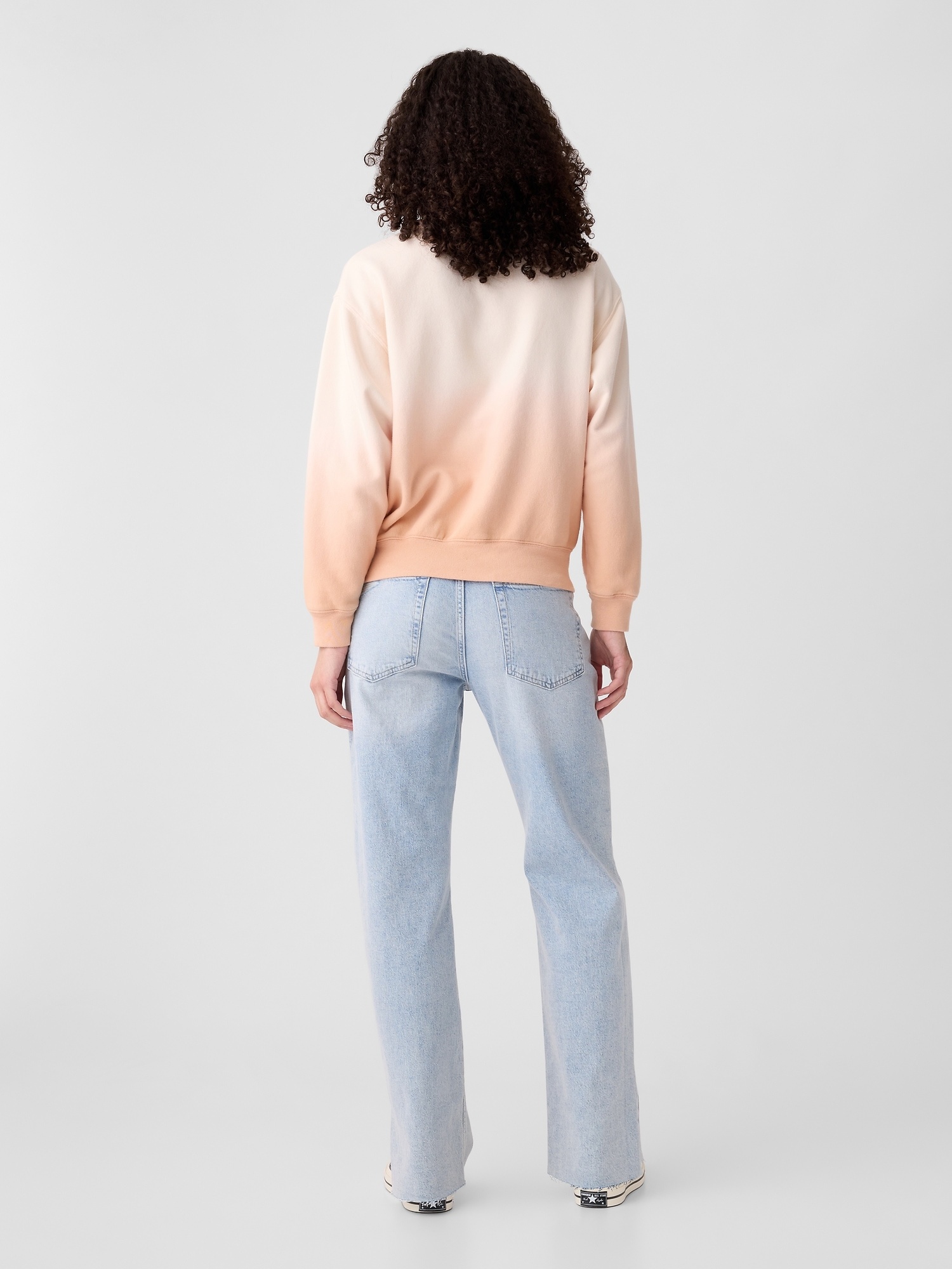 Dropped shoulder, long sleeves with banded cuffs.