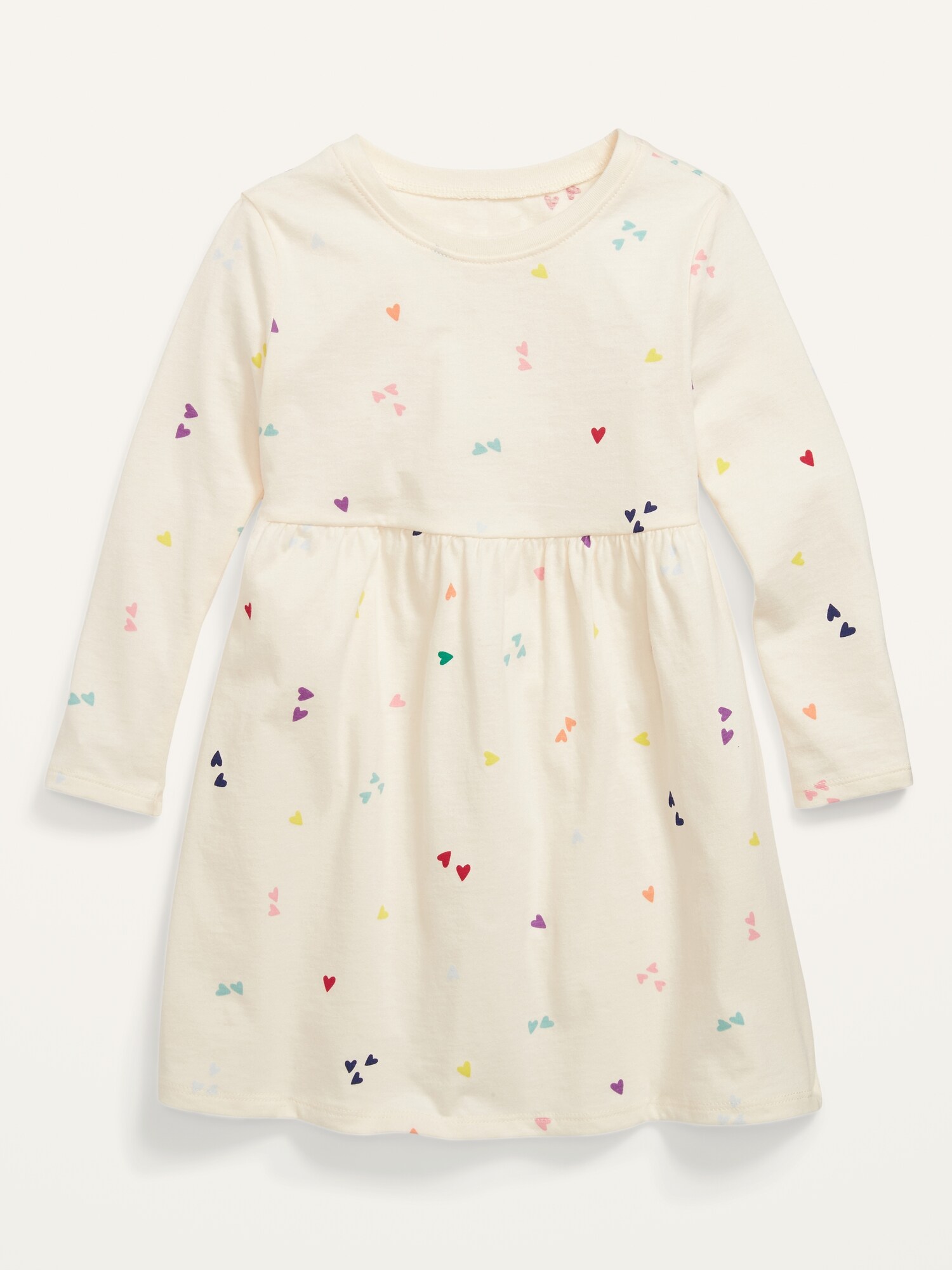 READYSTOCK Patterned Jersey-Knit Long-Sleeve Dress for Baby Girls – Multi Hearts