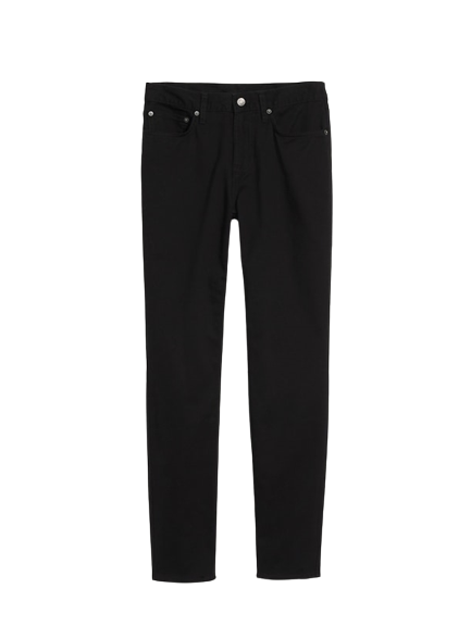 - Contoured waistband, with button closure and built-in belt loops.