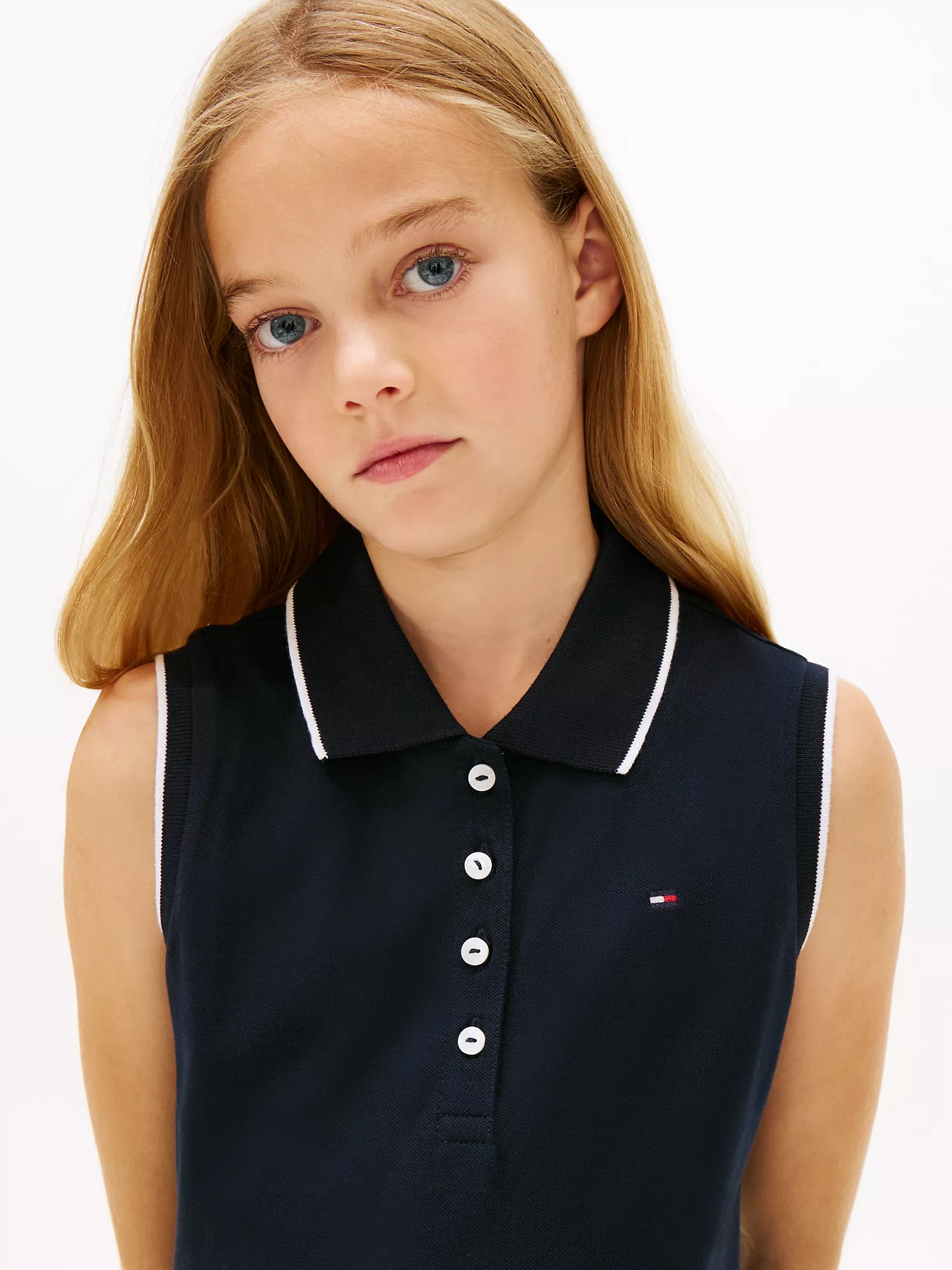 C16-05-1235-0XXS Kids’ Sleeveless Pleated Polo Dress – Navy #71J4154