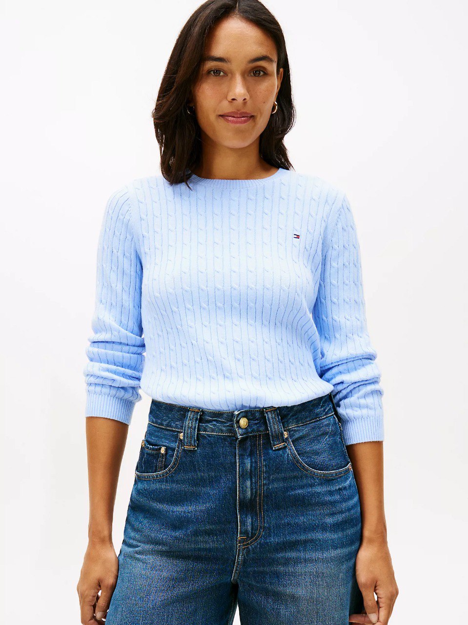 Tommy Hilfiger women’s sweater. Made from premium cotton in a flattering, easy fit, our lightweight long-sleeve cable knit sweater is a soft, comfortable layer.