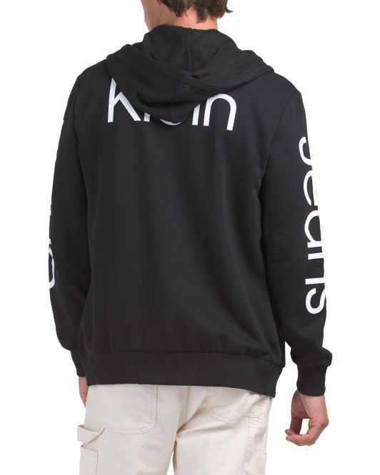 CALVIN KLEIN Long Sleeve Traveling Logo Full Zip Hoodie – Black