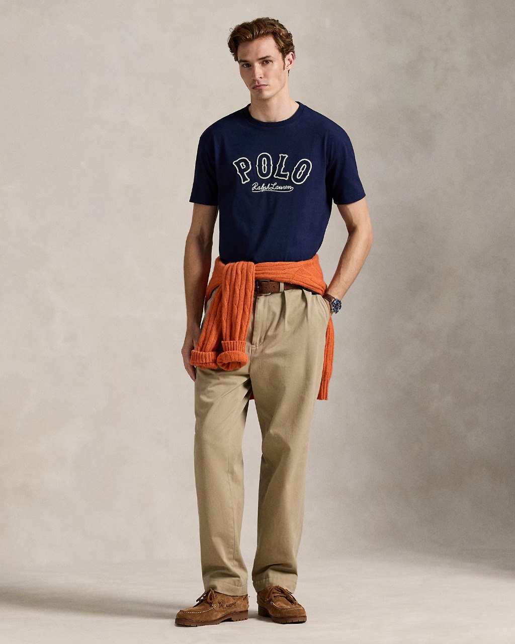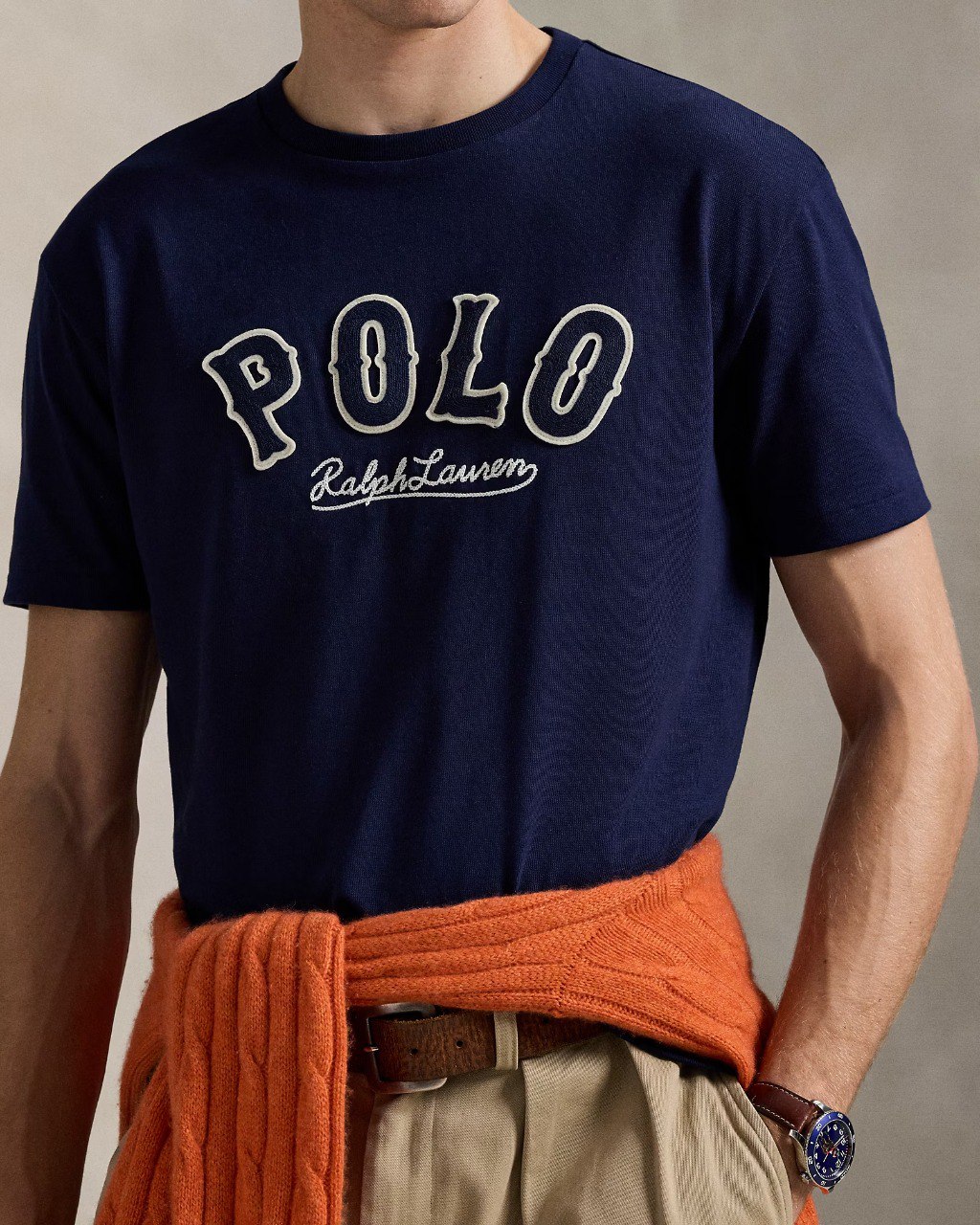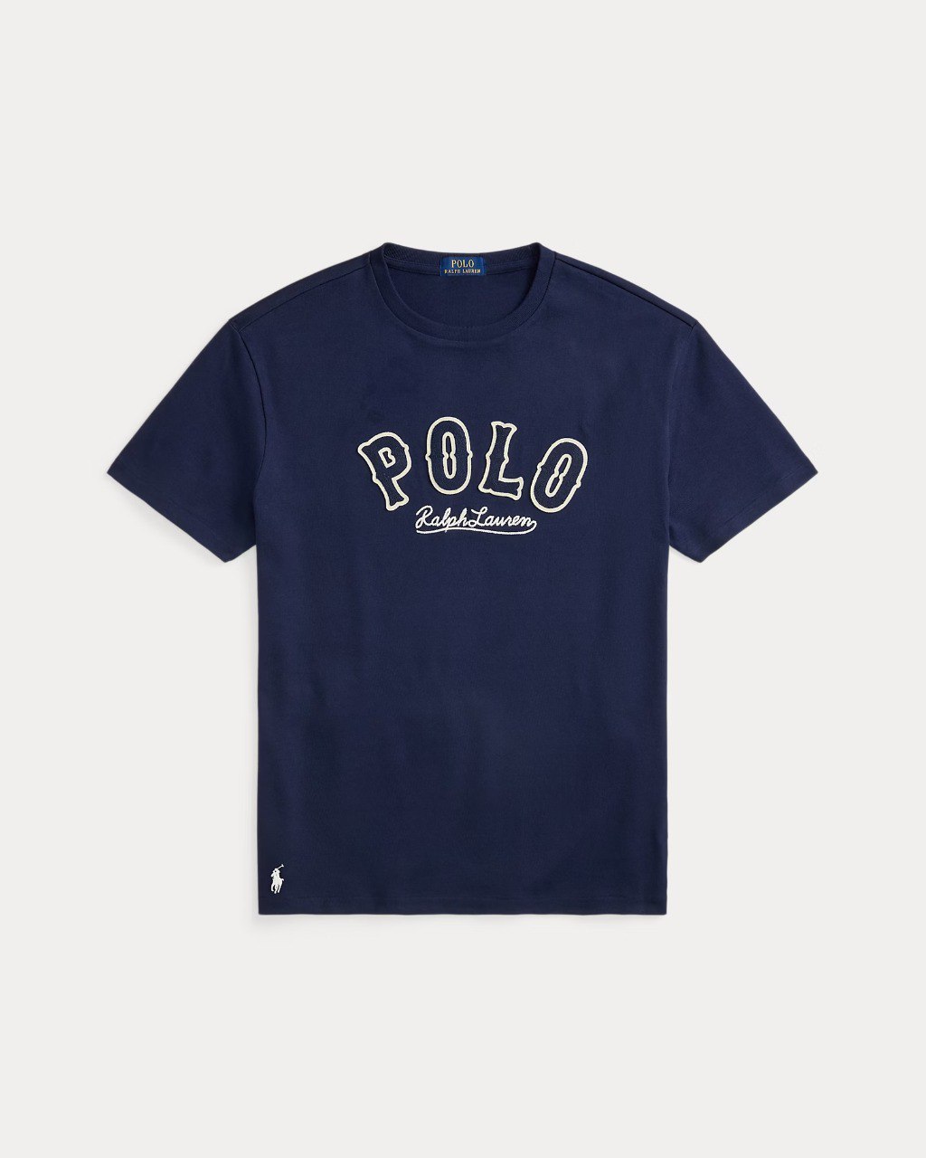 - Embroidered appliqués spelling out “Polo” and “Ralph Lauren” embroidery at the center front.