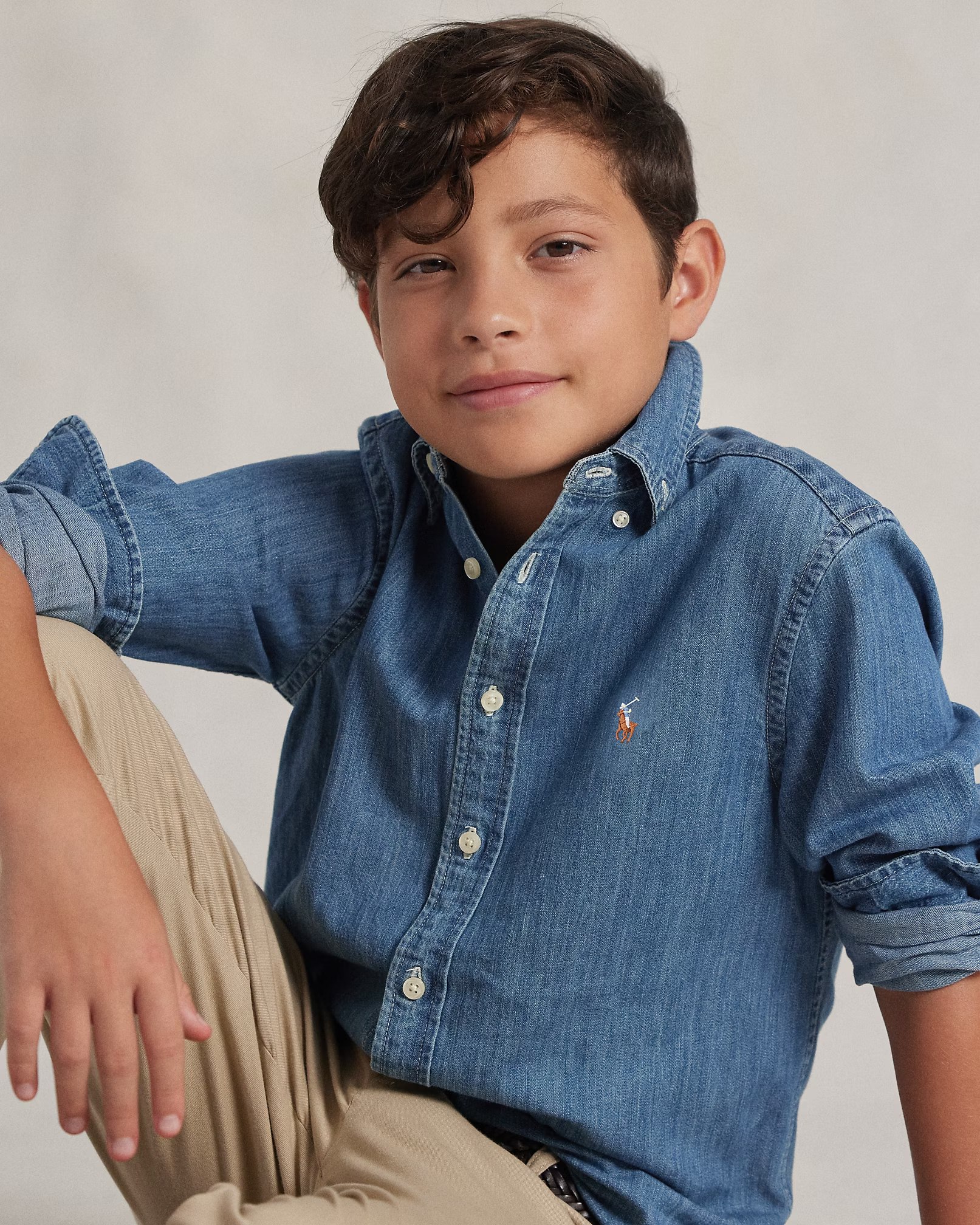 - This shirt combines the polished look of our iconic oxford with rugged cotton chambray for quintessential Polo style.Details