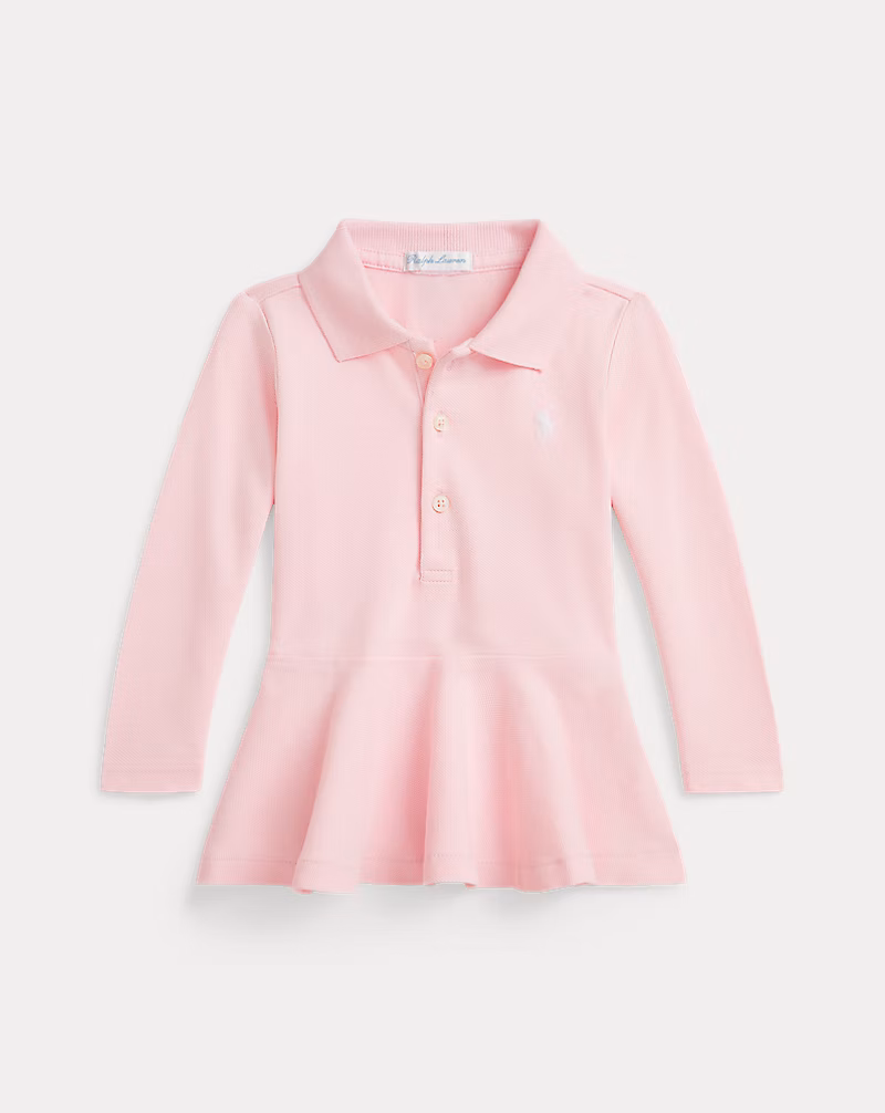 Cotton Mesh Peplum Polo Shirt Baby girl- Pink
