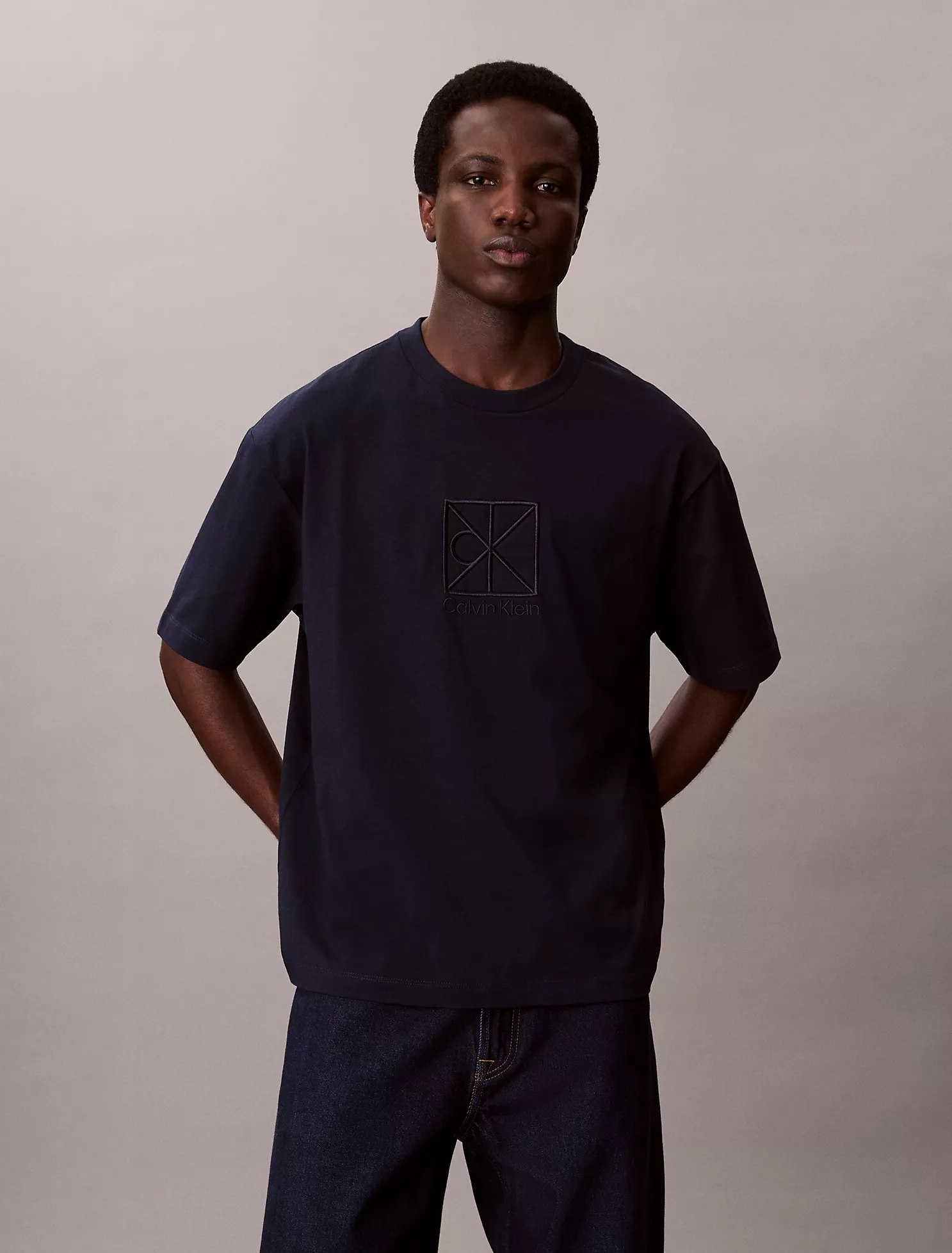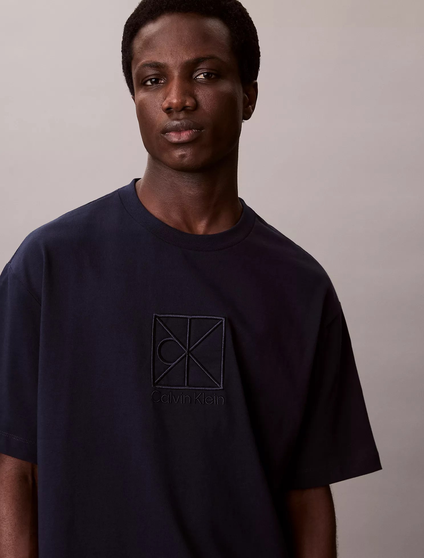 A relaxed t-shirt embroidered with an emblem logo design at the front. Made from 100% cotton for soft, breathable comfort. Designed with short sleeves and a crewneck.