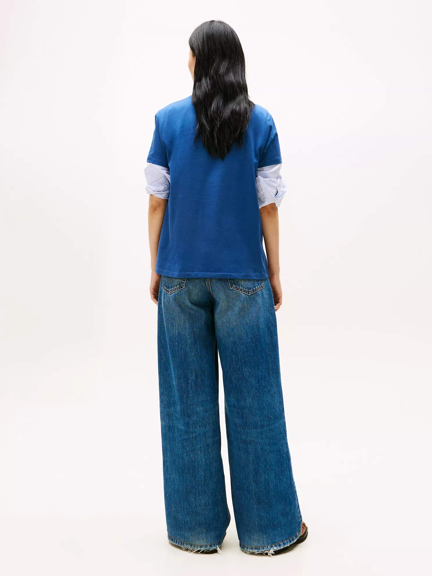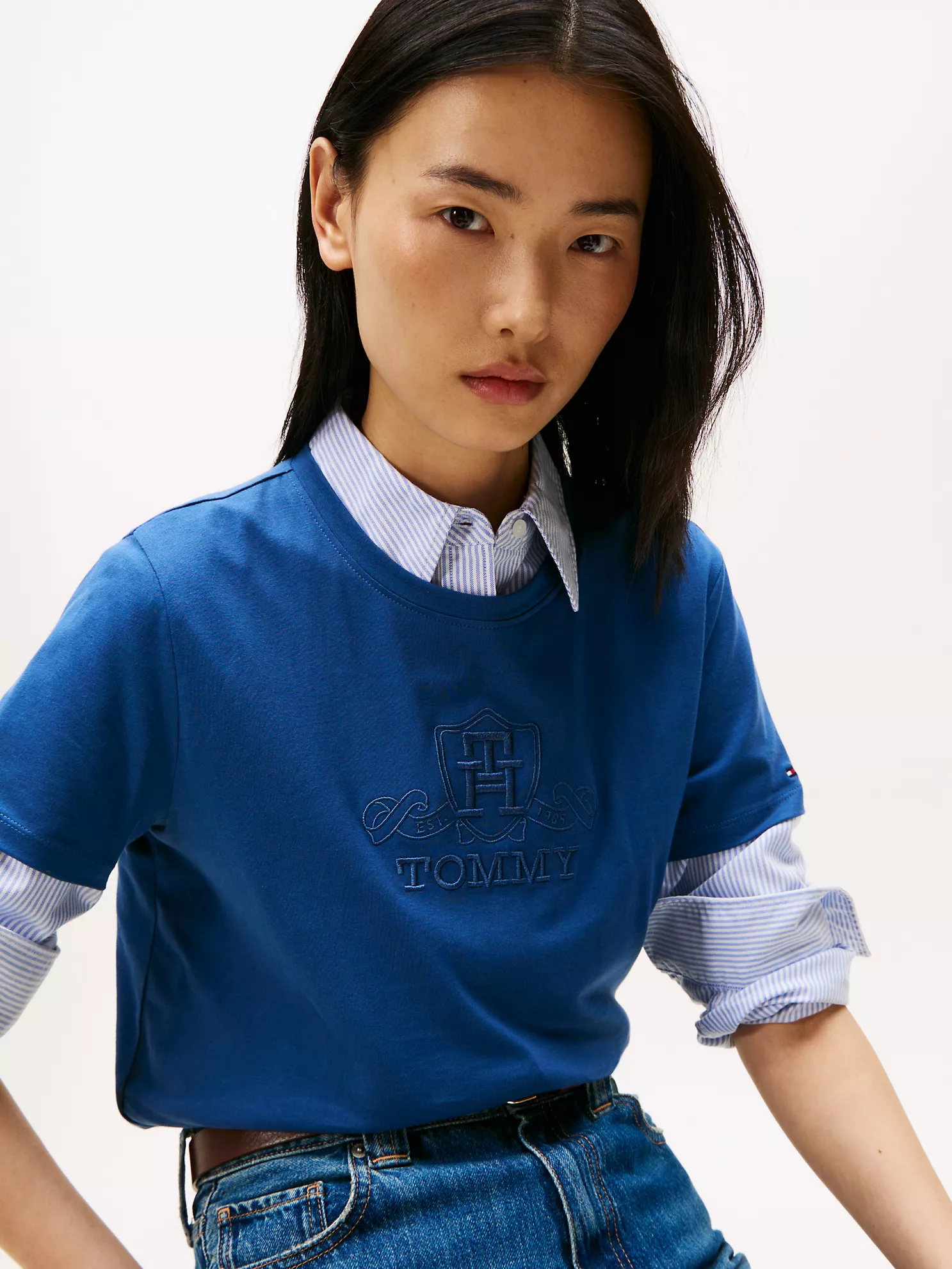 Tommy Hilfiger women’s T-shirt. Made from pure cotton and designed with our embroidered crest banner logo, our tee is a soft, comfortable layer.
