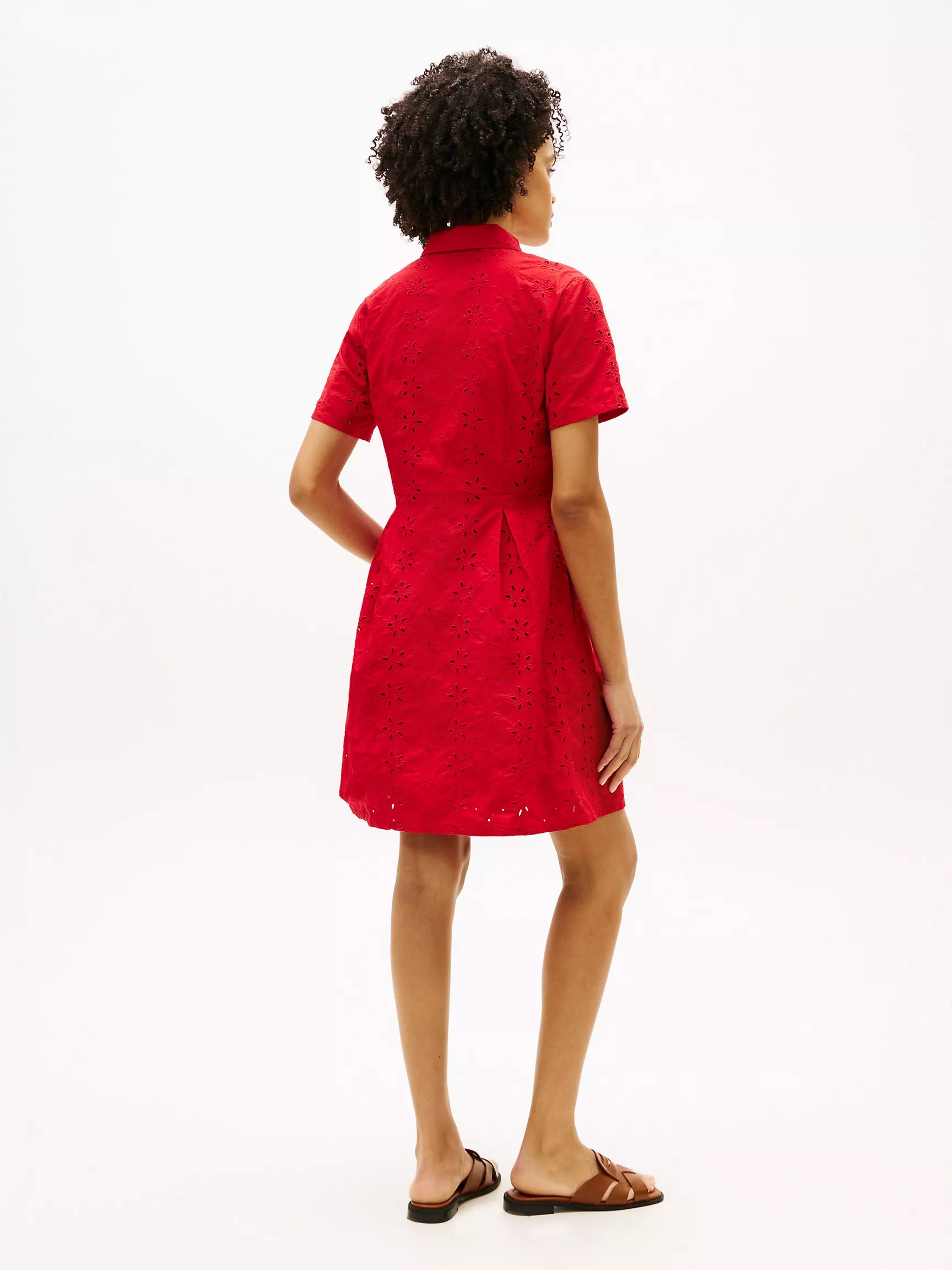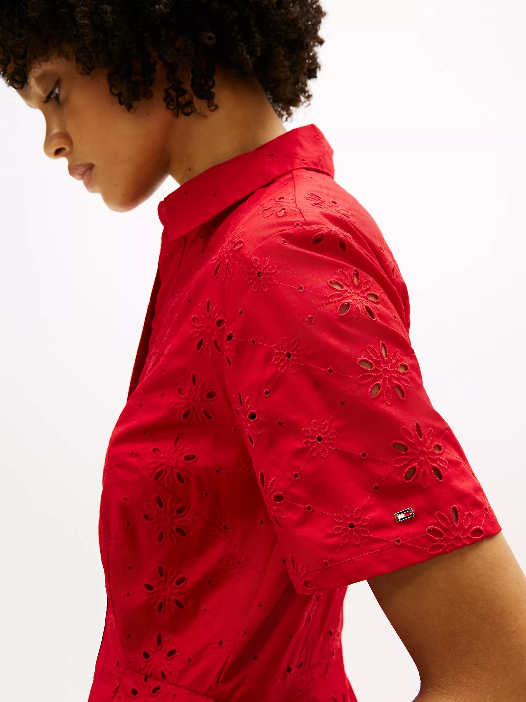 Embroidered Eyelet Poplin Shirtdress-Primary Red