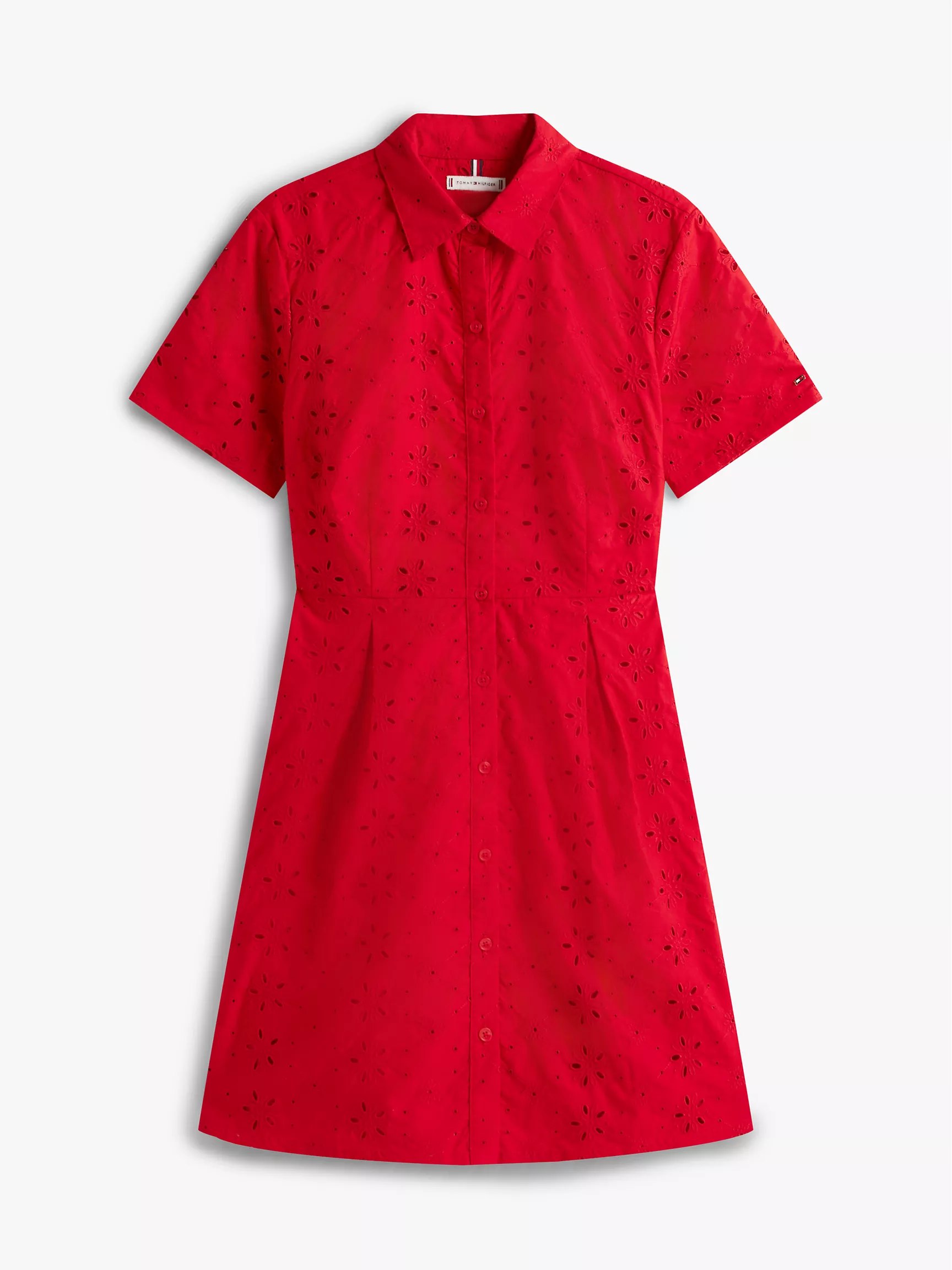 Tommy Hilfiger women’s dress. Our crisp poplin shirtdress features intricate embroidered floral eyelets throughout. Designed in an easy fit, it’s an effortless look for workdays and weekends.