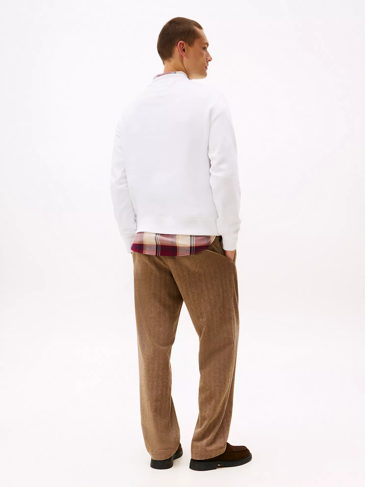 Tommy Hilfiger men’s sweatshirt. Made from soft, brushed-back fleece with a flat, clean face and smooth feel, our cozy crewneck features a rib-knit hem, collar and cuffs. It’s finished with our embroidered Tommy logo front and center.