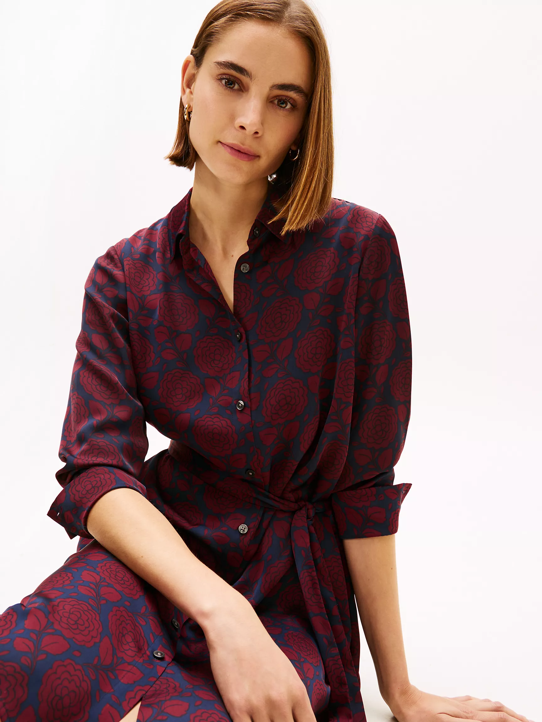 Tommy Hilfiger women’s dress. Cut in a fluid drape, our shirtdress features a self-tie belt and handy side pockets. Designed in a standout floral print with a sleek finish, it brings new life to your work and weekend wardrobe.