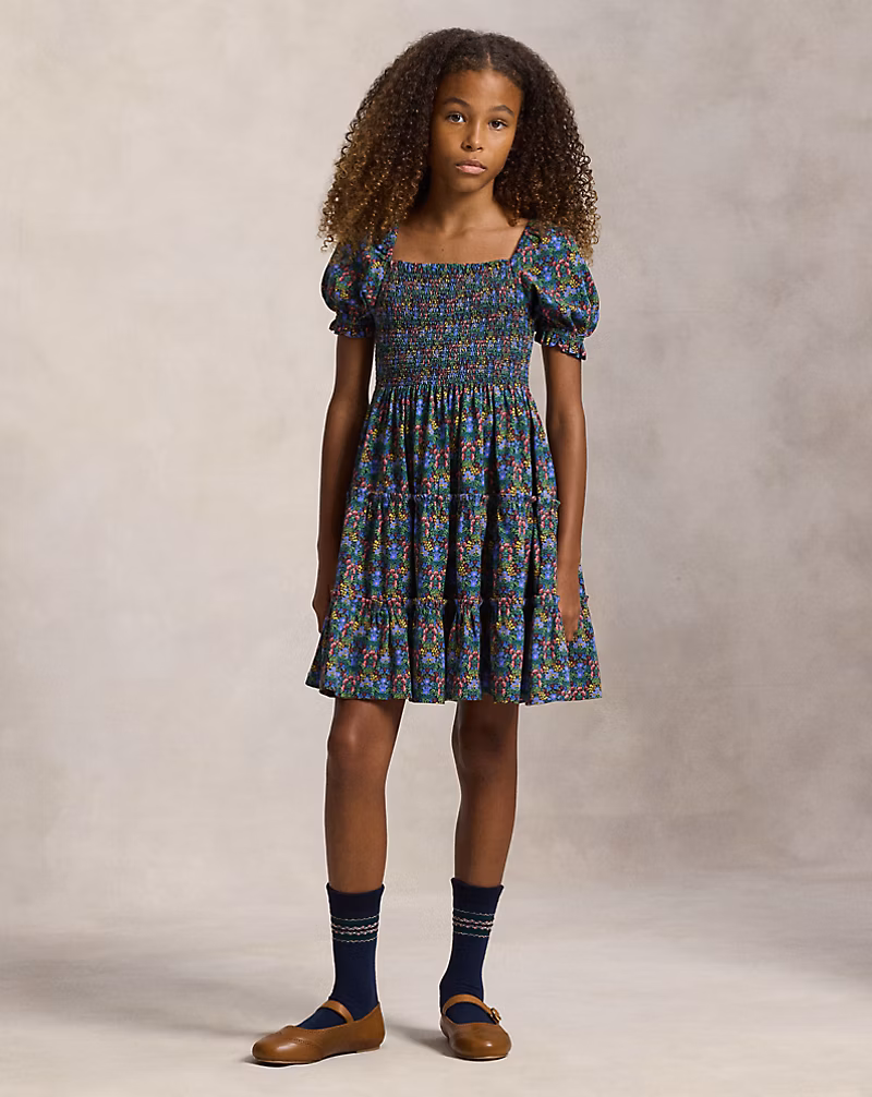 Floral Smocked Cotton Jersey Dress Toddler/Kid Girls-Chrystie Floral Navy