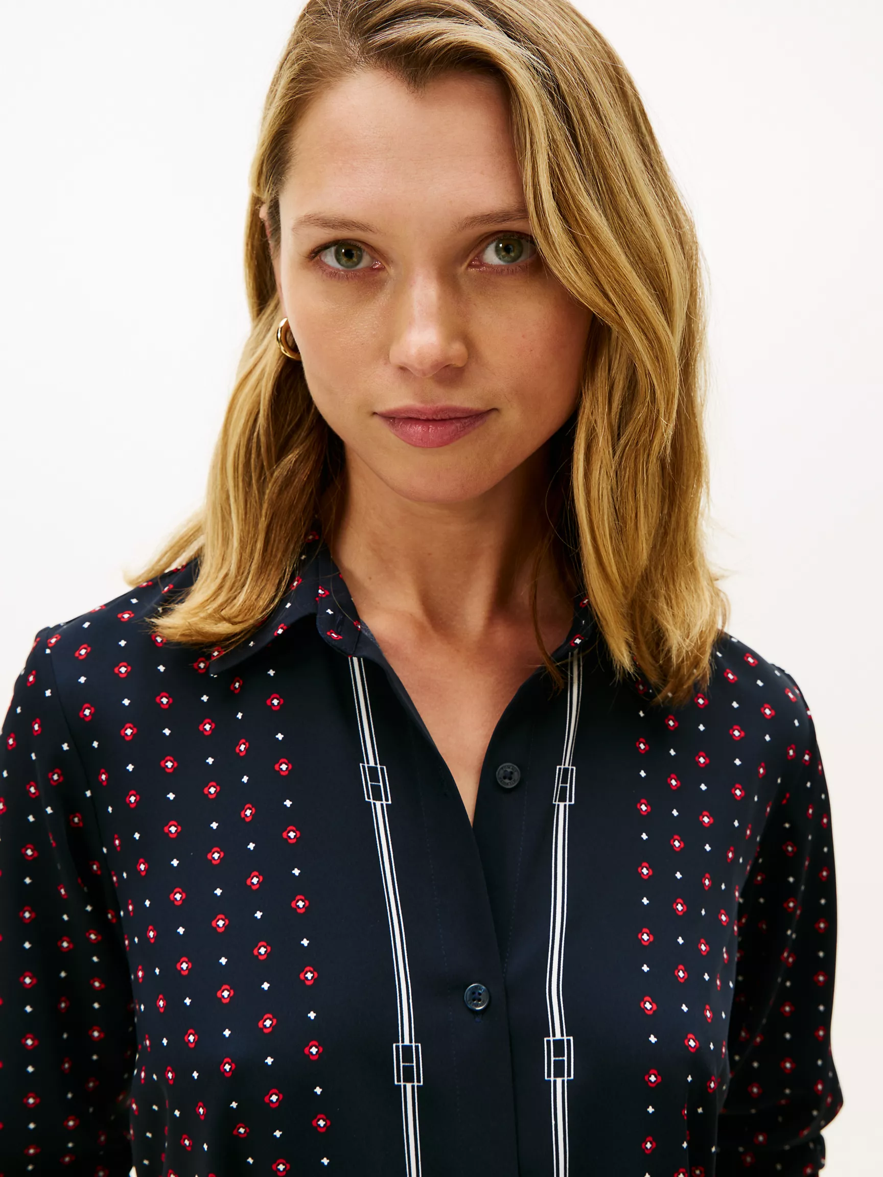 Tommy Hilfiger women’s dress. Made from fluid crepe with an effortless drape, our shirtdress features a self-tie belt and handy side pockets. The standout foulard print offers the perfect opportunity to play with patterns and enliven your wardrobe.