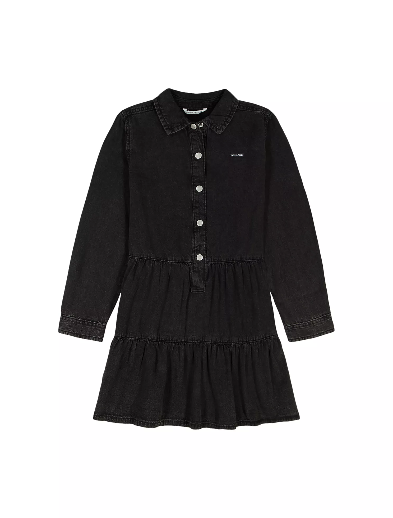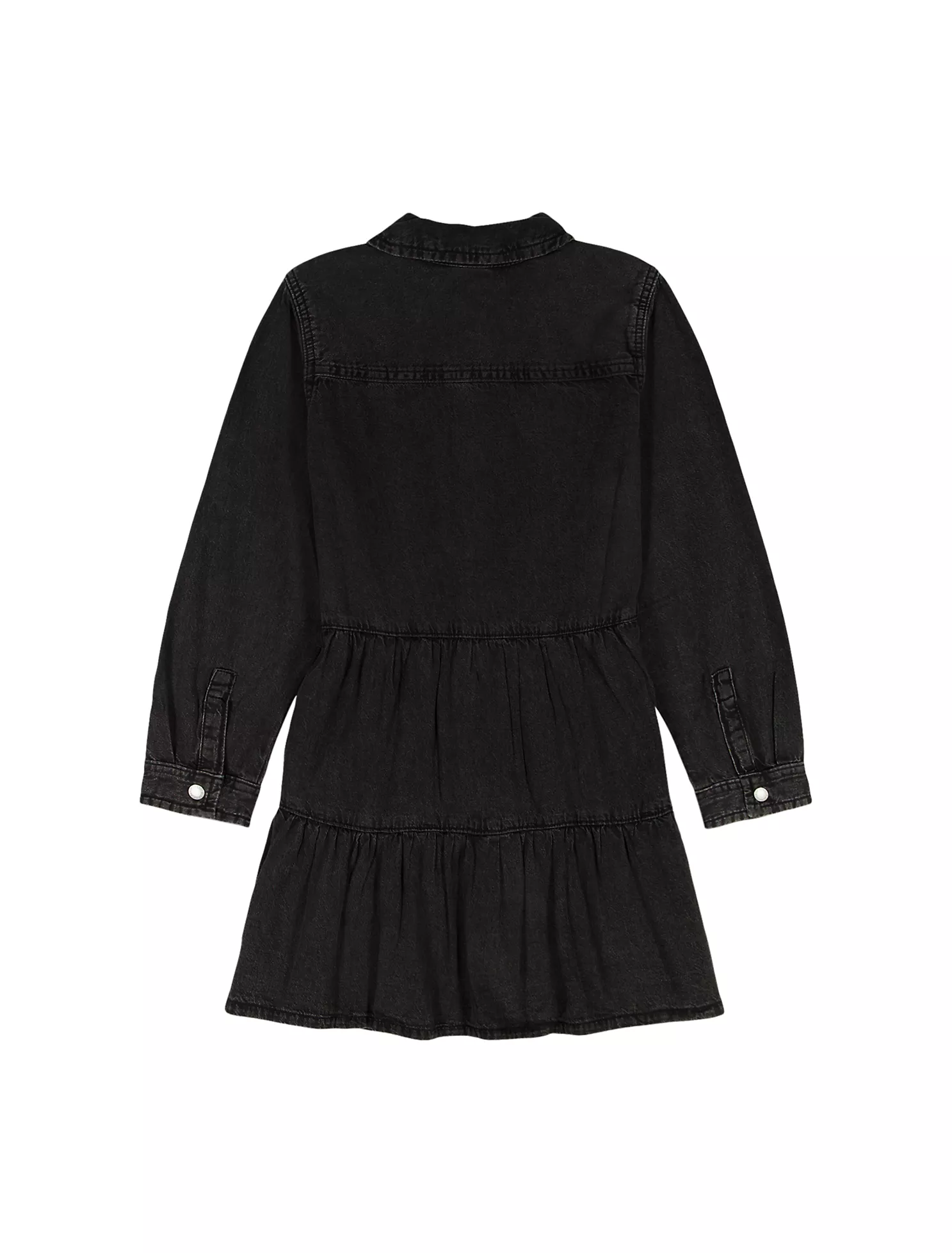 Girls Denim Mini Shirt Dress-Nordic/Grey Haze