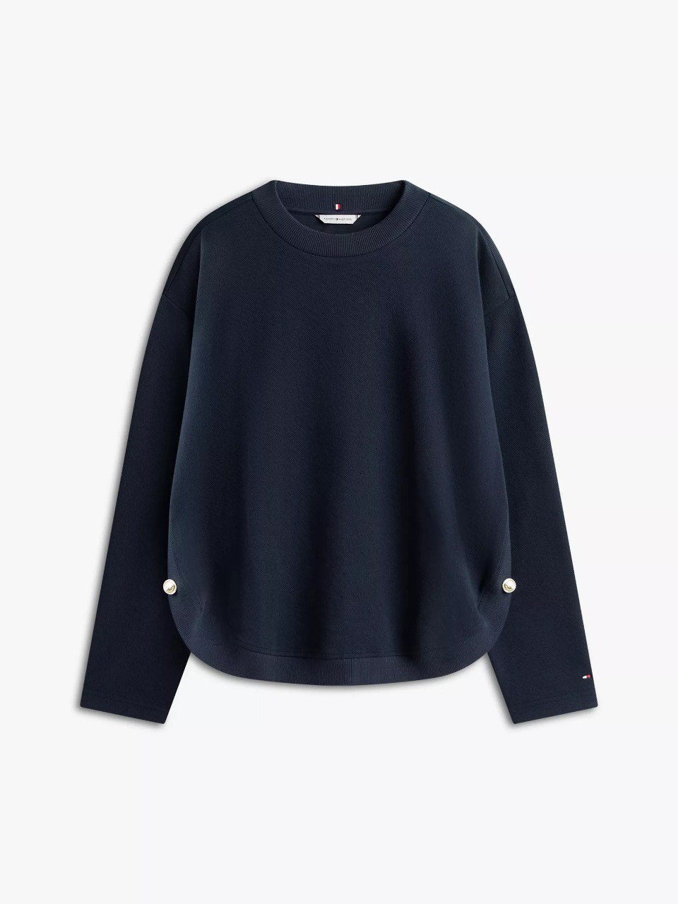 Tommy Hilfiger women’s sweatshirt. Made from smooth, double-sided cotton interlock, this sweatshirt is both durable and exceptionally soft. Decorative gold-button details along the sides nod to timeless nautical style.