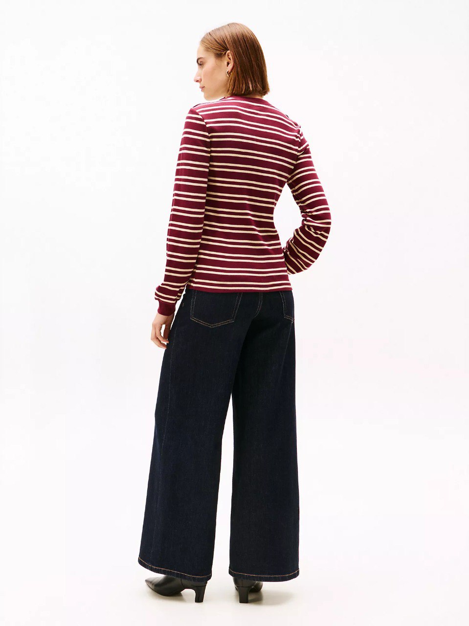 Tommy Hilfiger women’s T-shirt. Made from pure cotton, this soft crewneck tee is cut in an easy, flattering fit. Inspired by classic nautical design, it features gold-button details along its shoulder and a striped design.